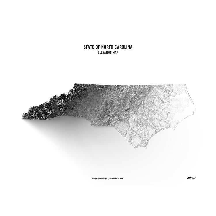 North Carolina Elevation Tints Map | Fine Art Print Map